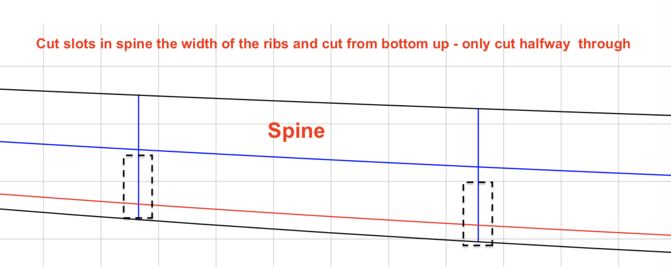 If choosing a fibreglassed finish with this type of build, the deck and bottom timbers can be 6mm thick. As the fibreglass provides structural integrity to the board. If you're going for an oiled or varnished finish, you will need at least 8mm thick deck and bottom timbers. The spacings of the ribs will need to be closer together to support the rider adequately. Usually 100mm apart where the rider will be standing. Varnish and oiled finishes will provide zero structural integrity to the board.